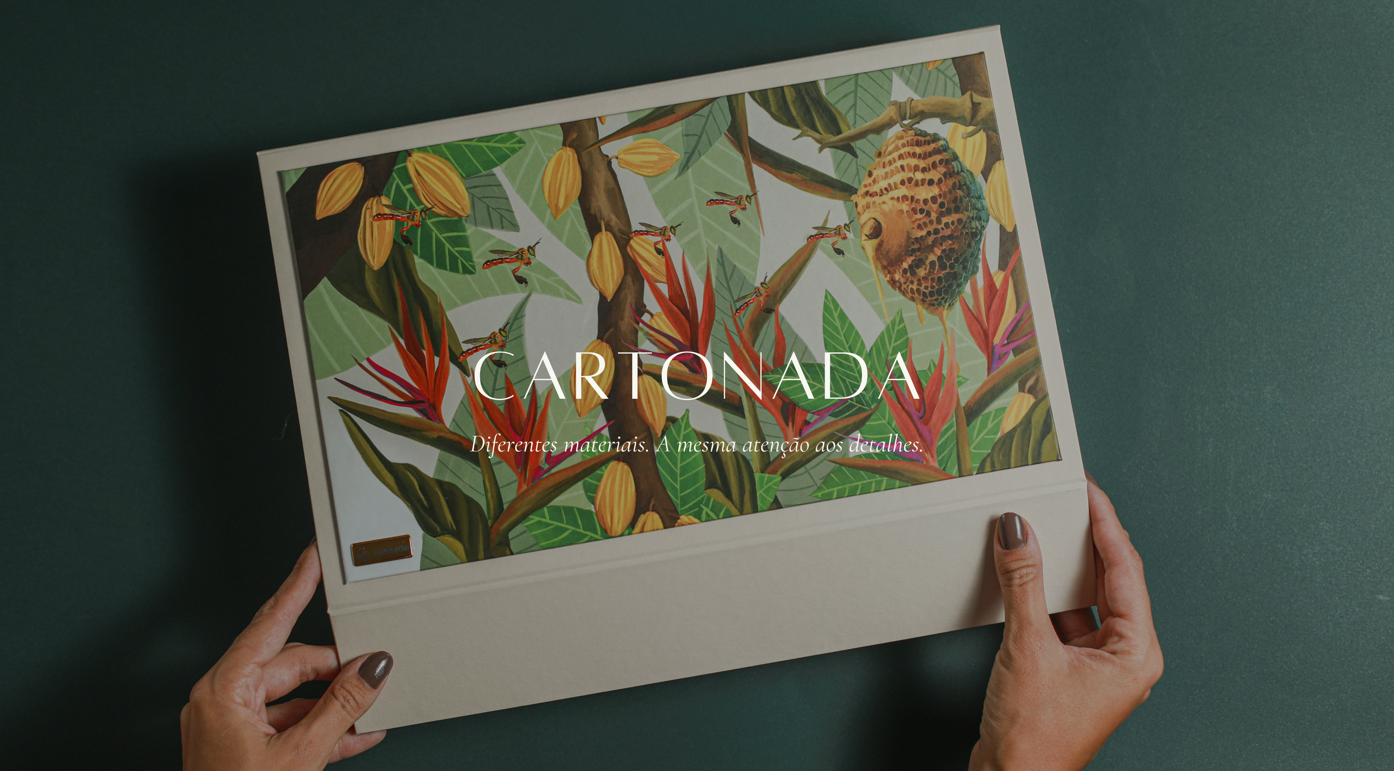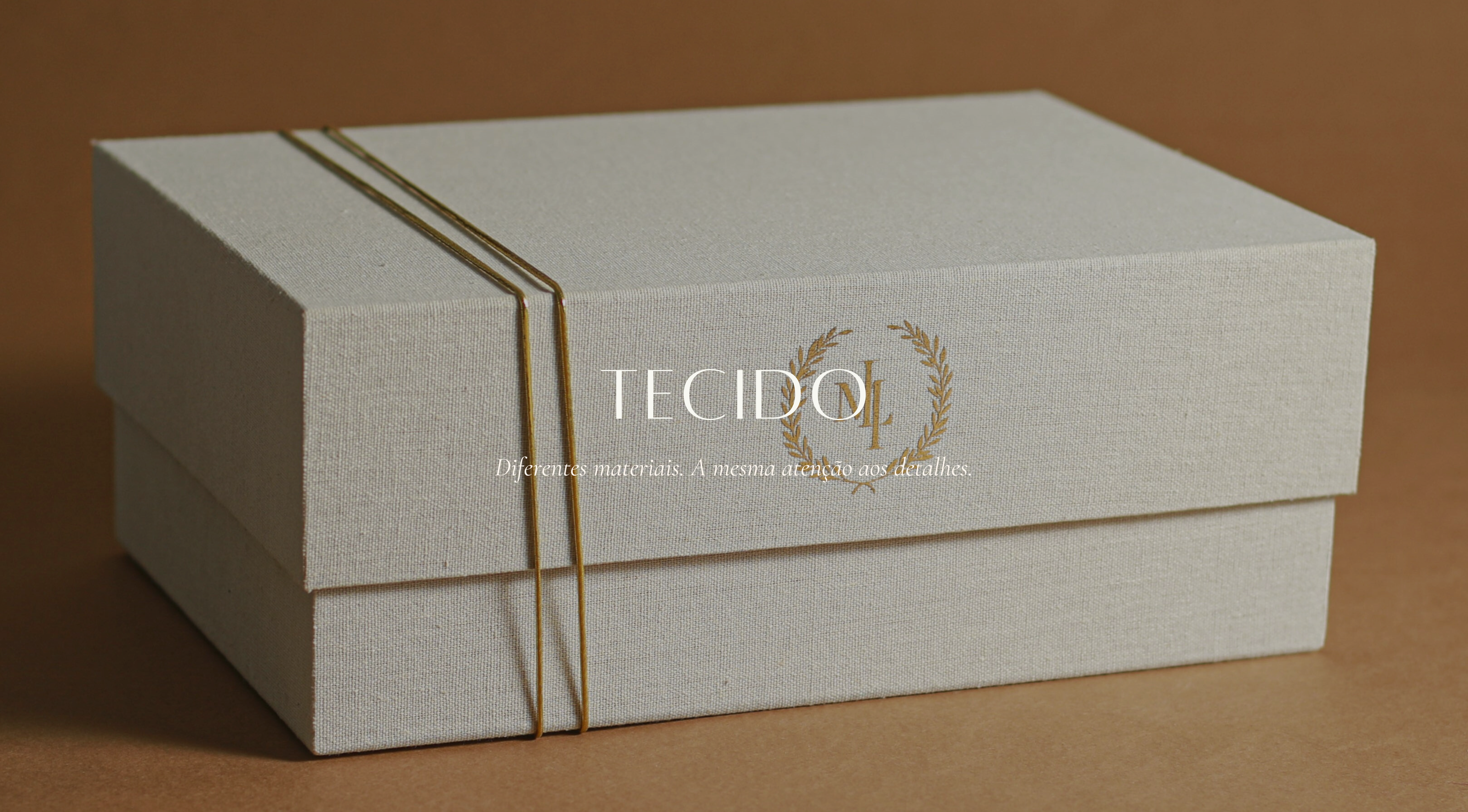 Trabalhamos com diferentes materiais, como cartonado, tecido, couro, papel e outros acabamentos que permitem explorar estética, textura e presença.